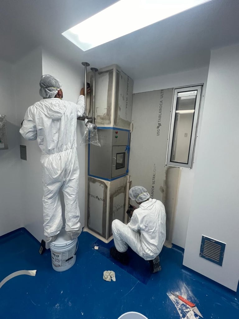 Espacios controlados estrictamente en cuanto a la concentración de partículas en el aire (polvo, microbios), diseñados bajo normas ISO 14644. Se construyen con materiales no particulados y sistemas de aire filtrado para garantizar un entorno libre de contaminación